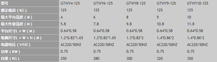 2. 該系列最大平臺高度4M、6M、8M、9M、10M